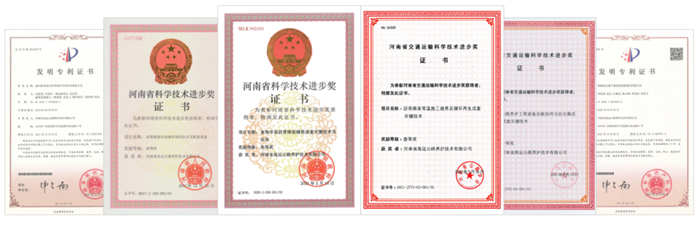 近年来,以改性铺装技术为核心,先后荣获多项科技进步奖,获得材料、装备和工艺方面的专利15项,其中发明专利5项,并入选河南省绿色低碳先进技术成果目录。